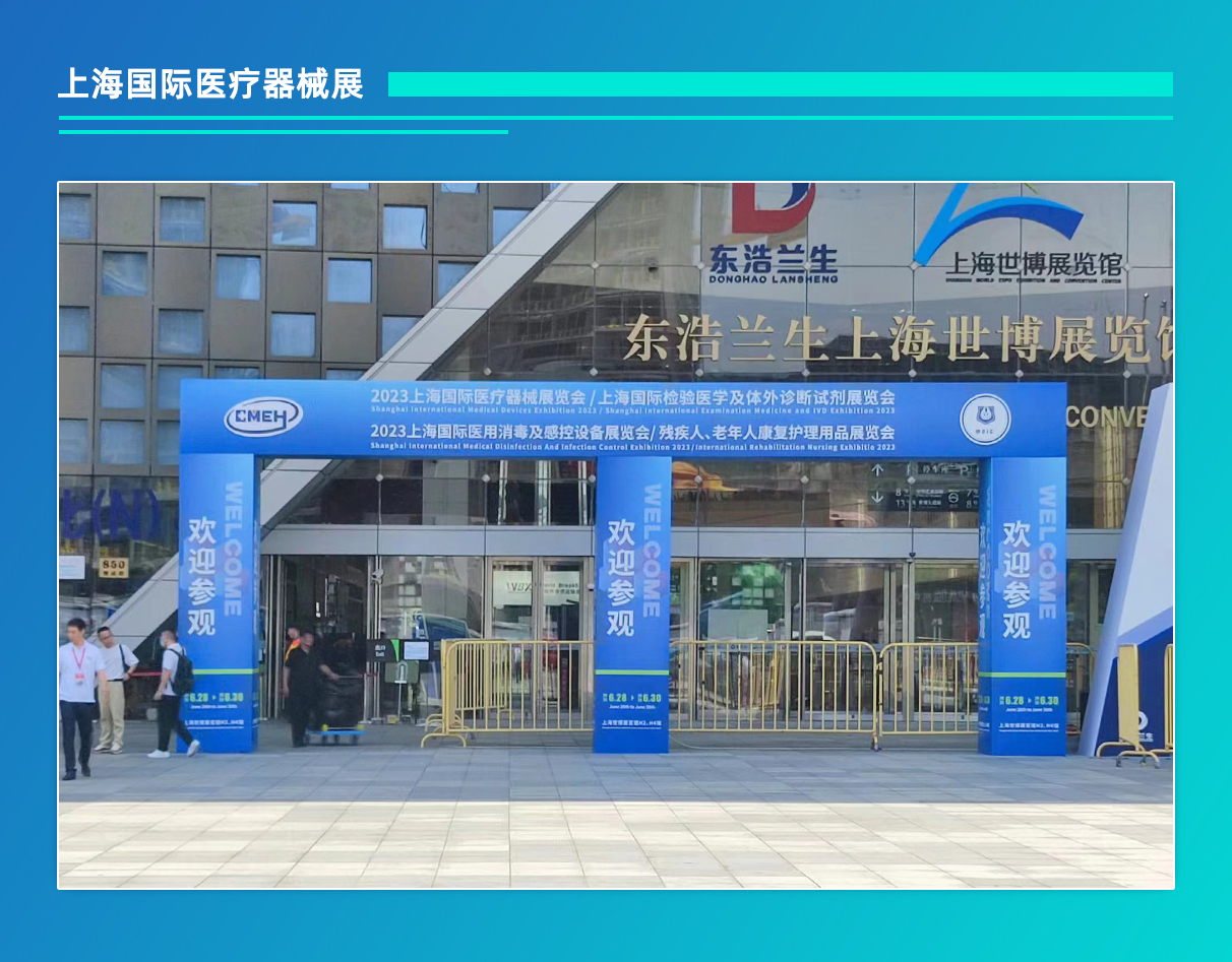 2023年6月28日,上海國際醫療器械展覽會在上海世博展覽館隆重開展!此次展會盛況空前,有超過1500家企業參展;超過60000人次醫療行業精英匯聚,展出內容涵蓋了醫用電子、醫學影像設備、醫療設計制造及配套產品、智慧醫療、智能可穿戴、醫院建設、病房護理及輔助設備、家用醫療、醫用敷料、體外診斷試劑、光學急救、醫用防護、消毒感控、康復護理以及醫療信息化等,直接并全面服務于醫療器械行業從源頭到終端醫療產業鏈。