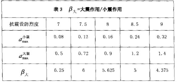 大震作用與小震作用之比(見(jiàn)表3)。