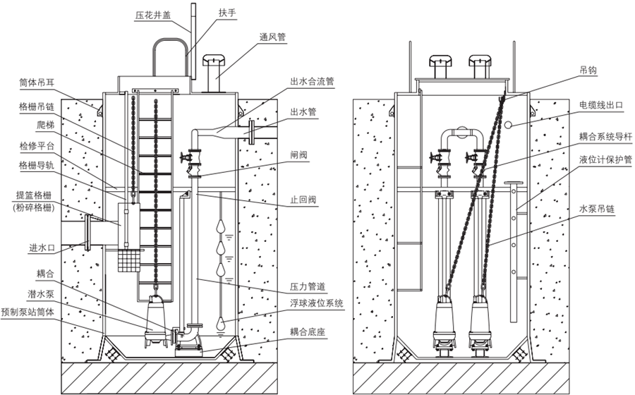 2、流動(dòng)性好,無(wú)阻塞,自潔功能,這是由于污水泵站科技的整合,泵坑采用流體設(shè)計(jì)。