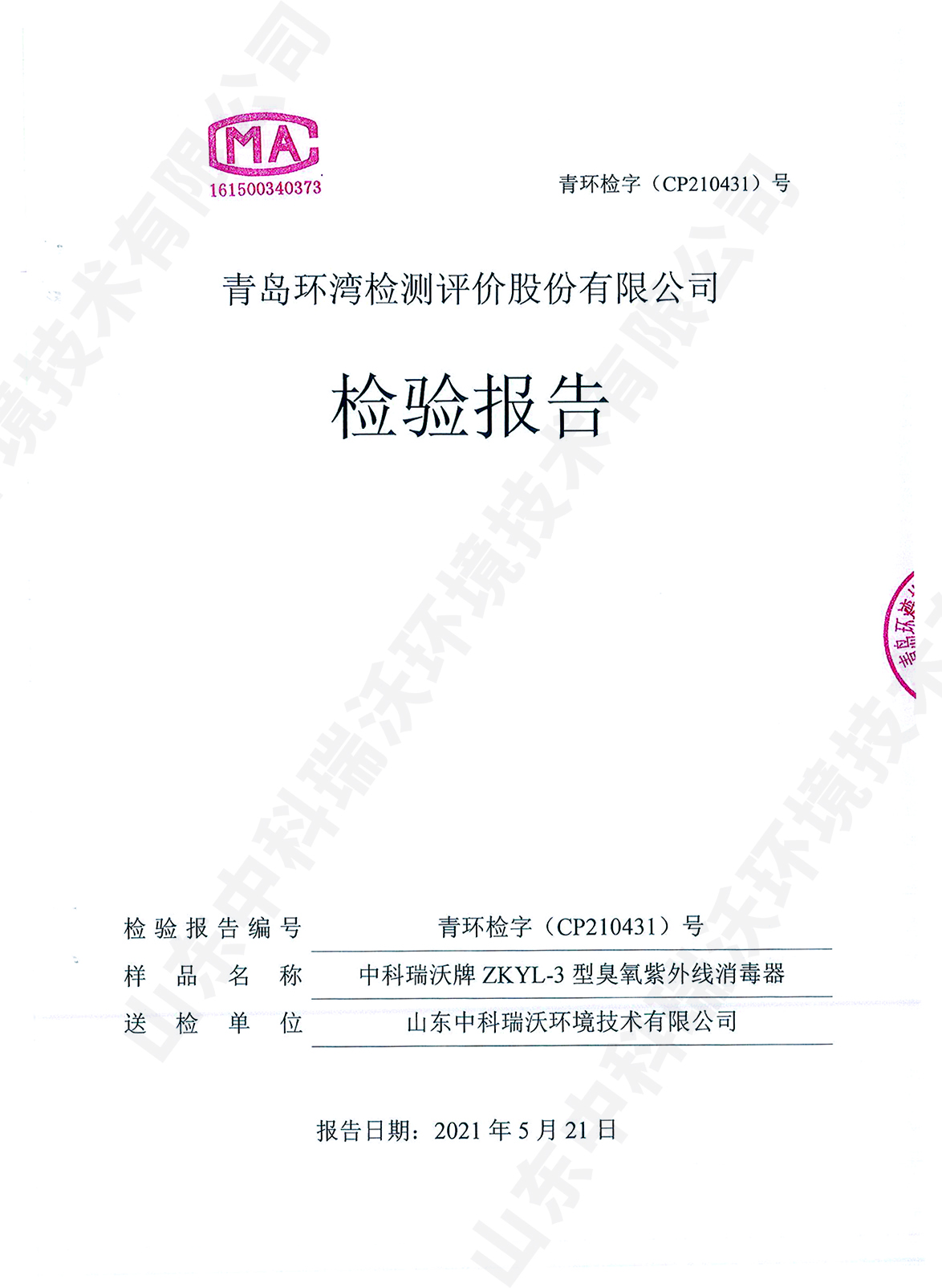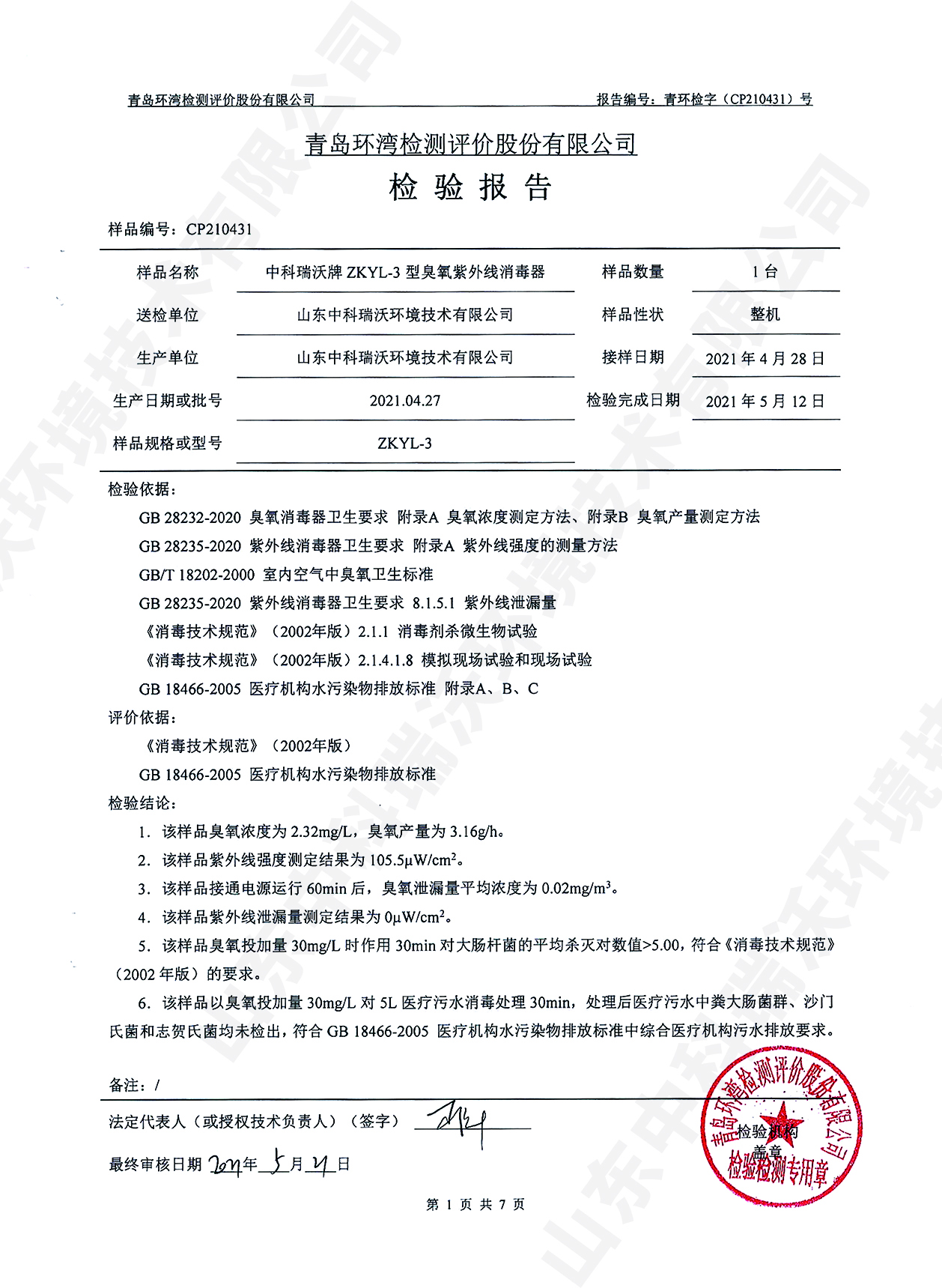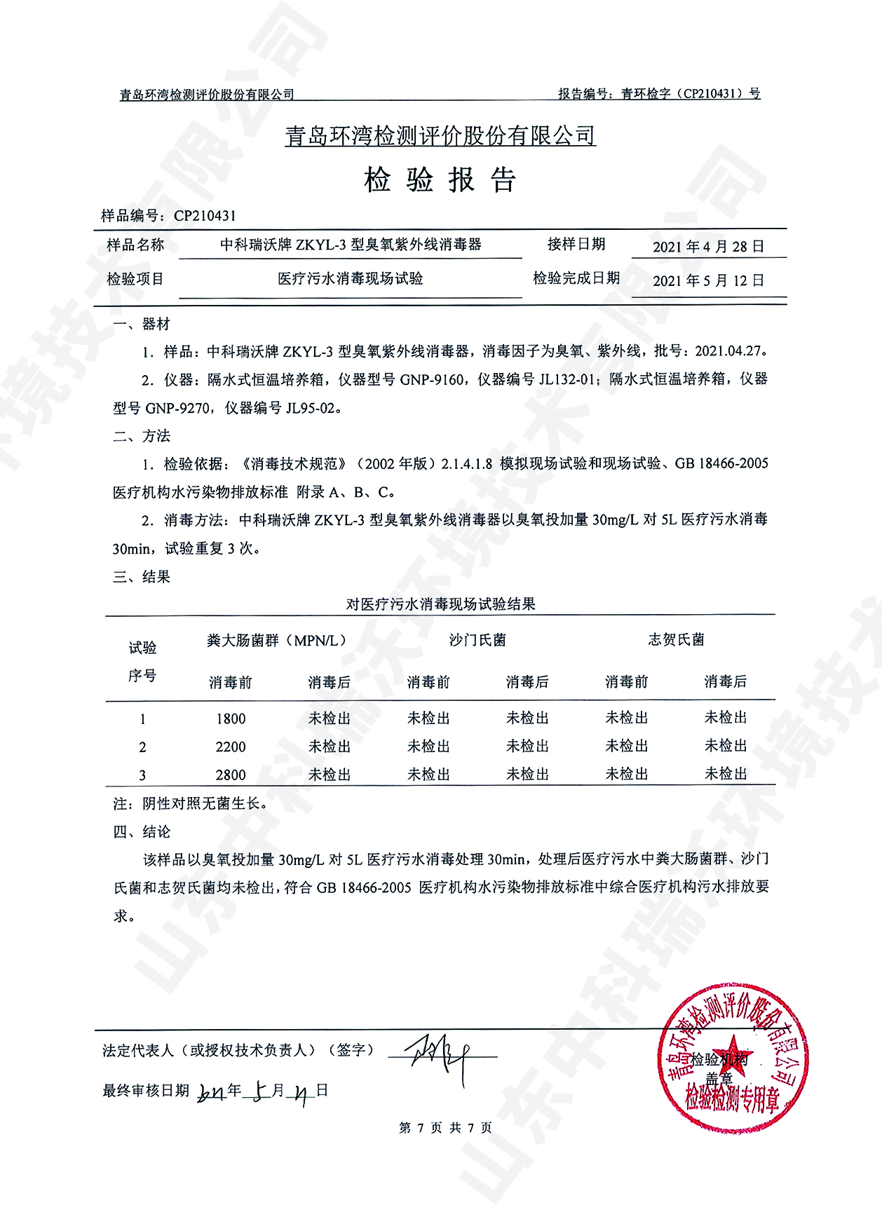 醫療污水處理設備檢測報告~臭氧+紫外線消毒