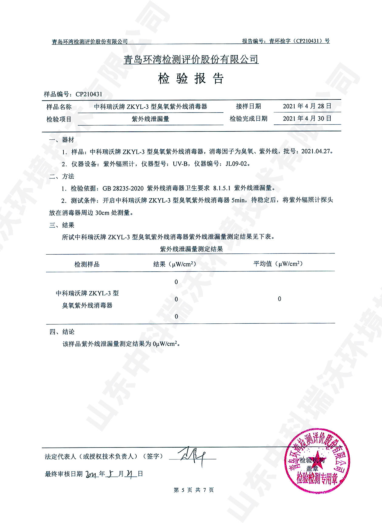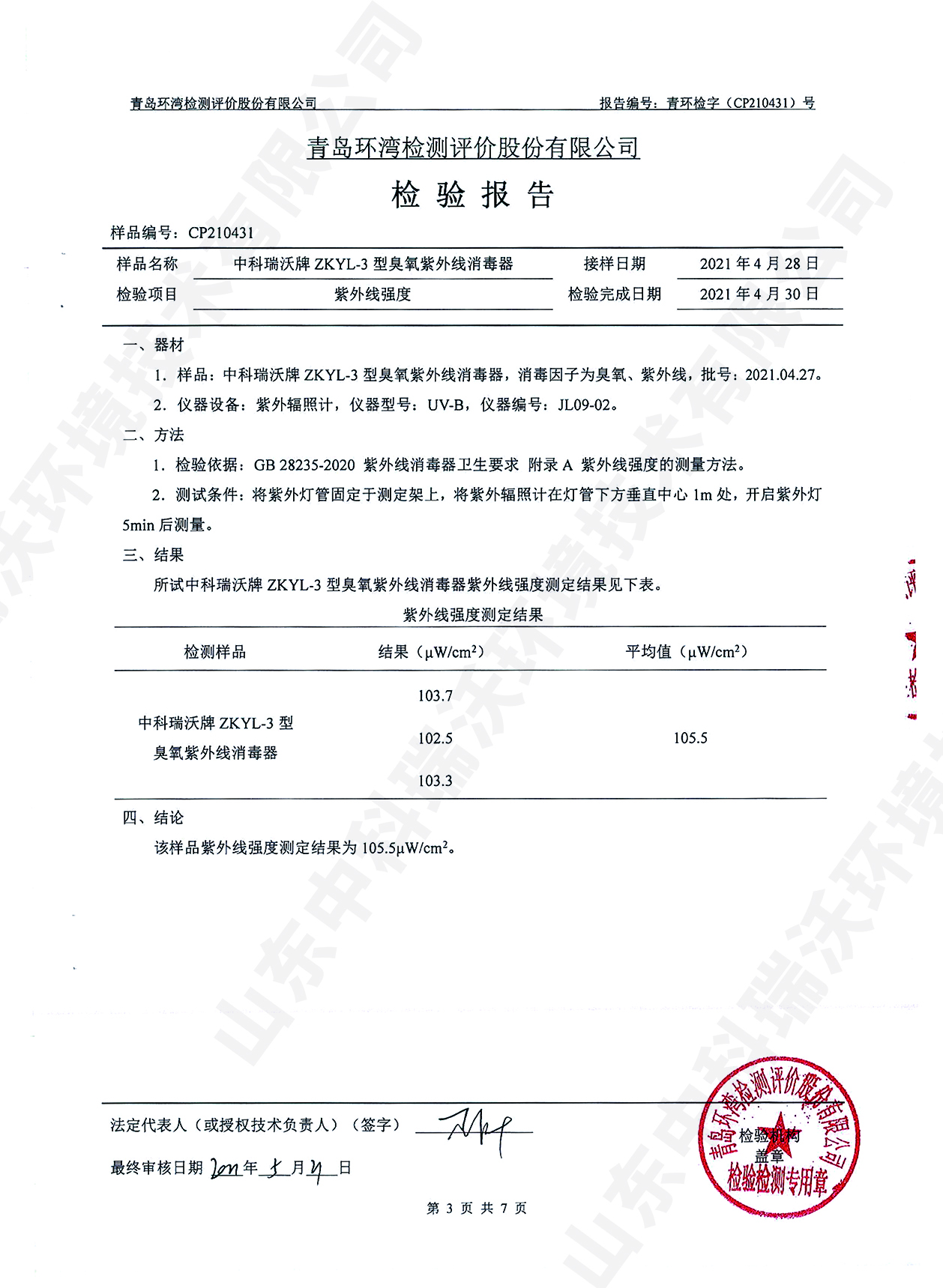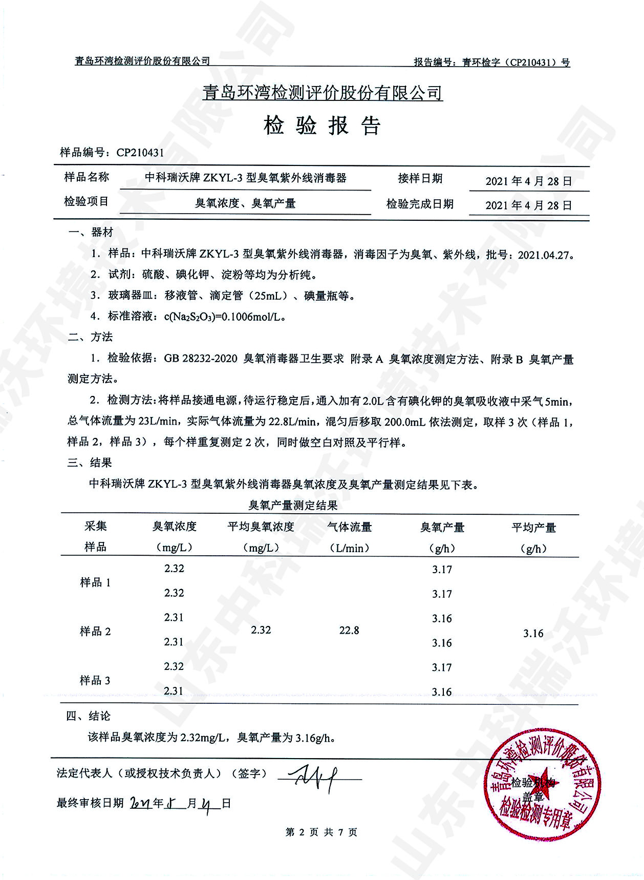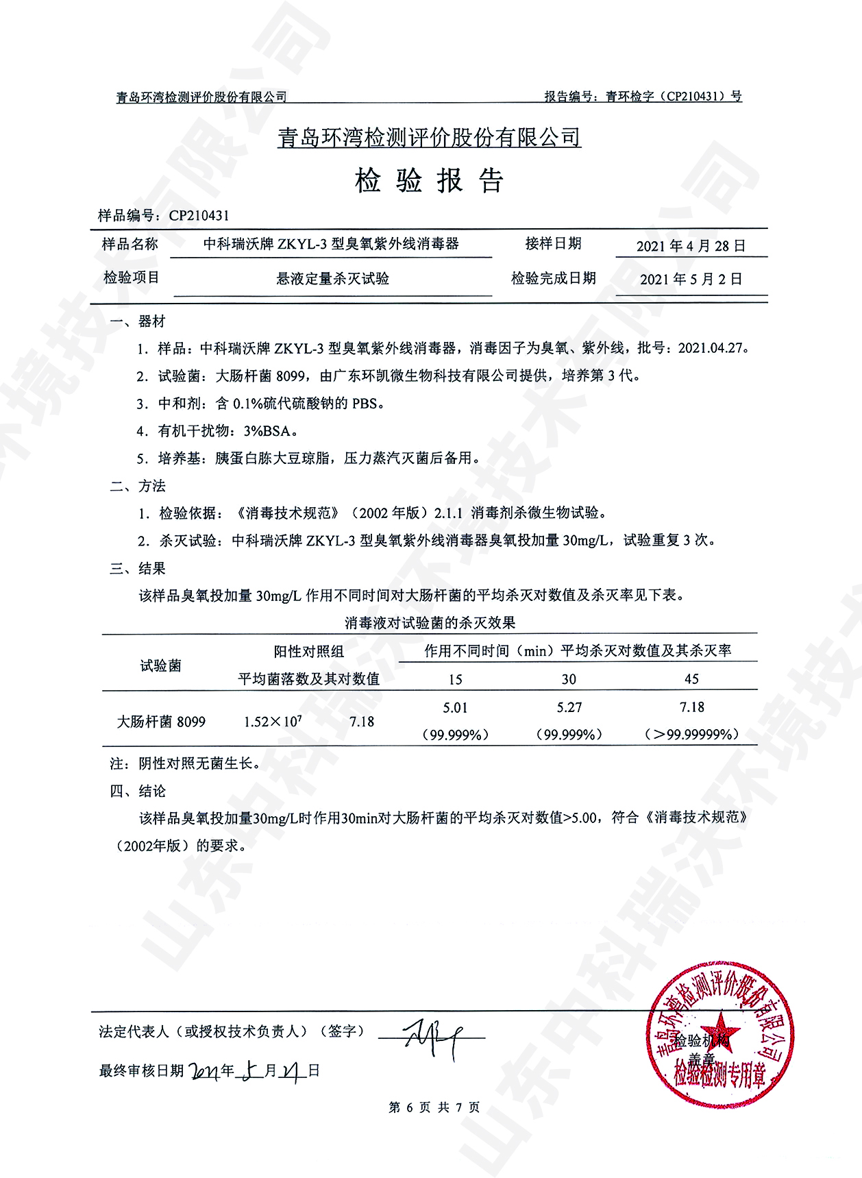 醫療污水處理設備檢測報告~臭氧+紫外線消毒